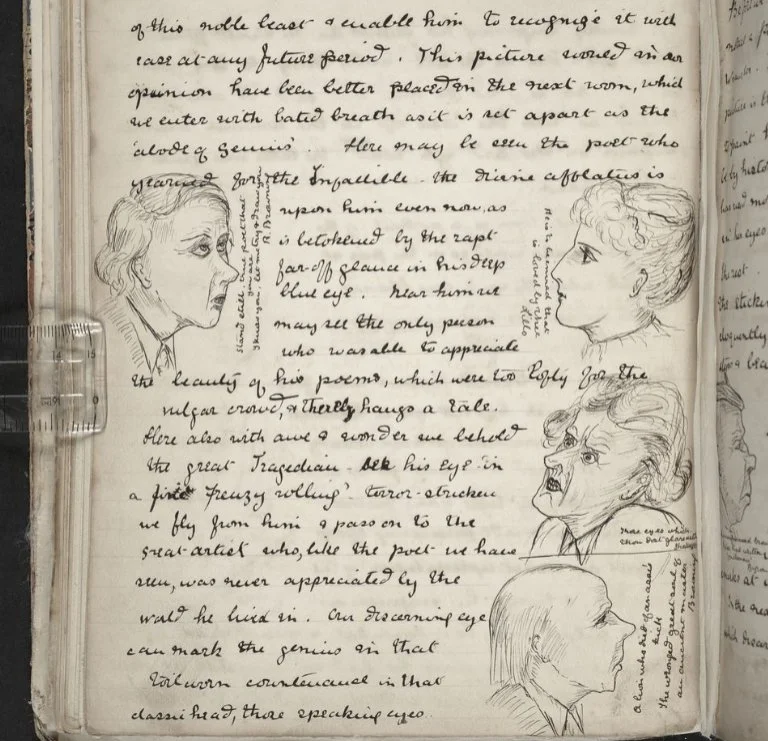 Cardiff University Special Collections & Archives contributed a wonderful collection of early handwritten student magazines covering the period 1885 to 1888. These unique volumes are full of fun and whimsey whilst giving us a fascinating insight into late 19th century student life in Wales. Each edition begins with a humorous editorial and plenty of articles on all manner of topics, poetry, reports on group outings and even hypothetical journeys, all accompanied by intricate sketches and photographs.